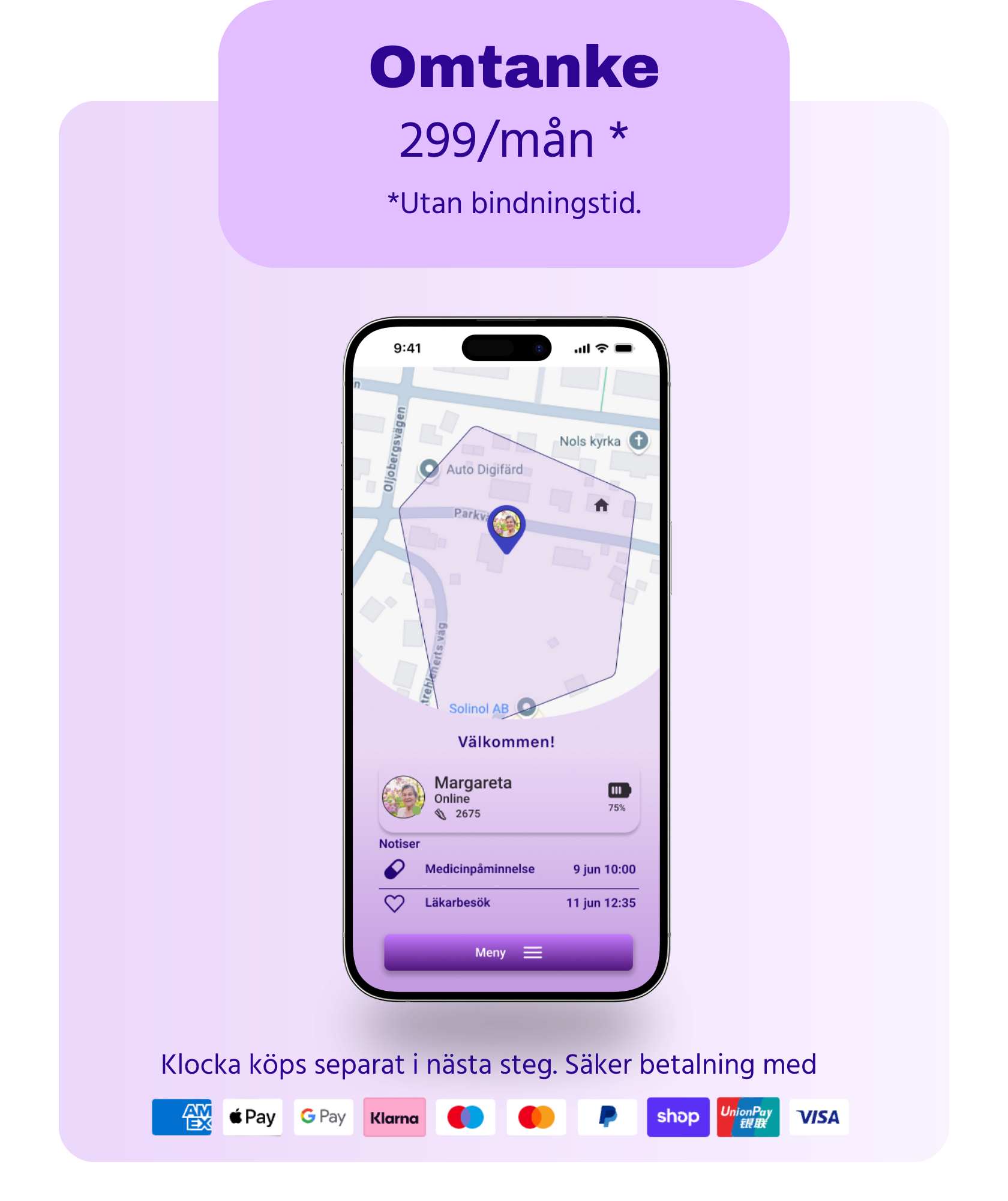 För dig som vill ha extra säkerhet. Inkluderar GPS-positionering, larmcentral dygnet runt och medicinpåminnelser för ett tryggare liv.